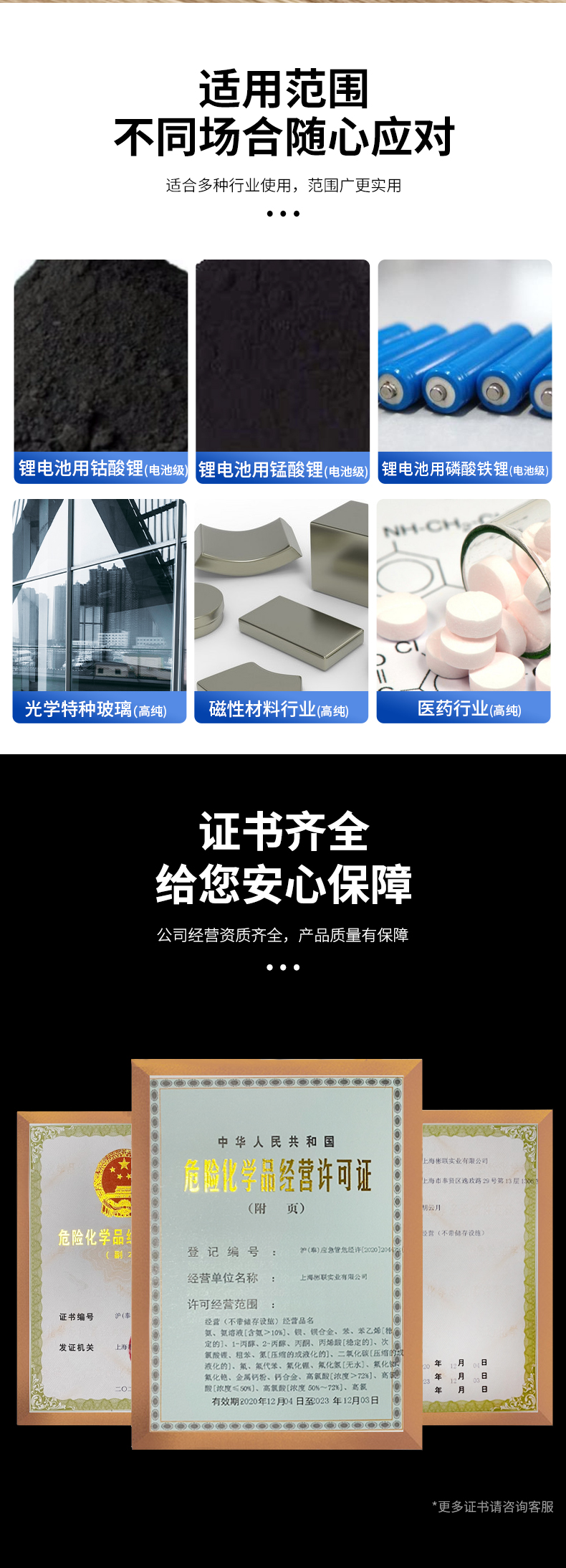 主营:电池级碳酸锂、工业级碳酸锂、氢氧化锂、高氯酸锂、醋酸锂、氯化锂、等产品
